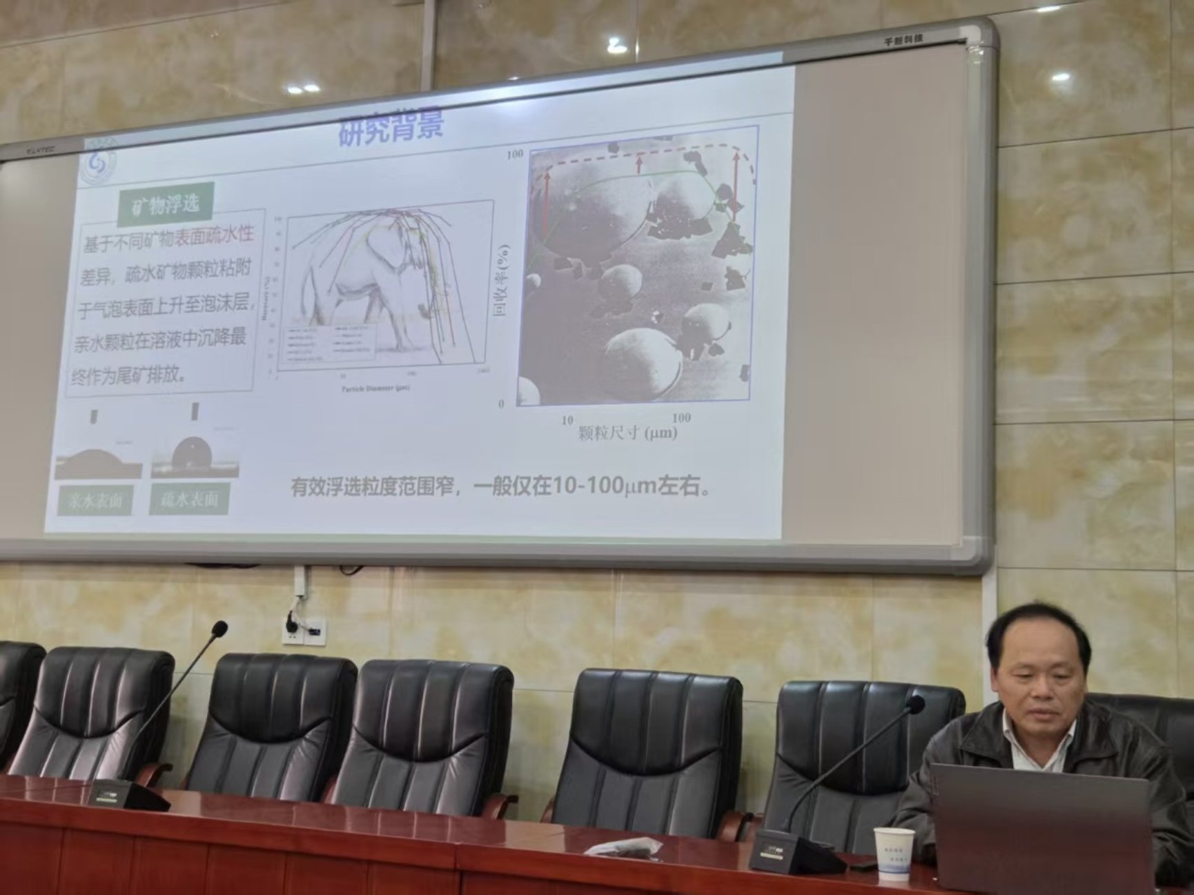 报告中,陶东平教授围绕矿物浮选领域核心,系统梳理了该领域的发展历程、研究热点与前沿趋势,介绍了纳米气泡浮选应用场景及相关系统。陶东平教授还结合自身经验,与现场的师生探讨交流,提出指导建议。