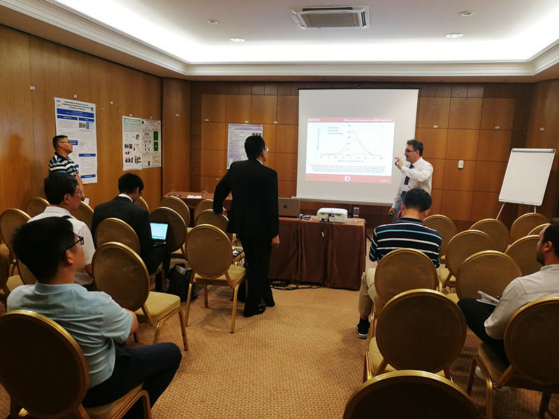 8月16日上午,陈世强副教授代表课题组作了“Application of a wet resonance grille in a ventilating shaft and a model for calculating the efficiency of dust removal”报告;针对矿井排风减排工程实践中存在的问题,介绍了矿井排风井湿式振弦栅板除尘系统及湿式振弦除尘效率计算模型,并介绍了成果应用于中金岭南凡口铅锌矿的实例,回答了同行的提问,得到了同行专家的高度评价。