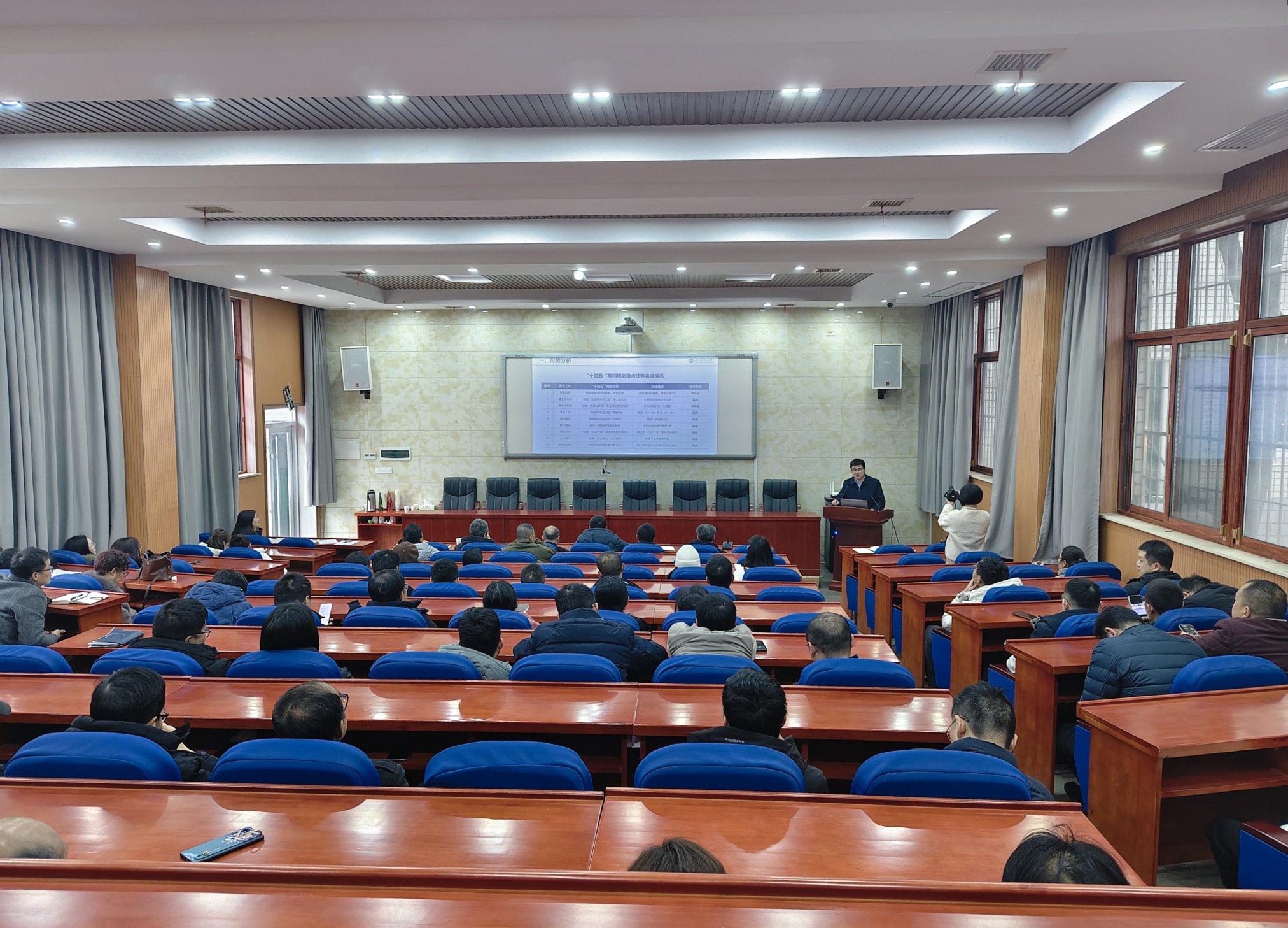 分管院领导分别就分管工作进行布置。赵延林副院长对a片无码 2025年科研项目情况进行总结,提出a片无码 2026年科研工作6项重点工作目标。刘韧副书记对a片无码 2026年学生工作、工会工作达成目标及重大改革措施进行说明。陈国梁副院长对a片无码 2026年实践教学、国有资产、学科建设、本科教学管理重点工作进行布置。游波副院长对a片无码 2026年研究生工作进行布置。