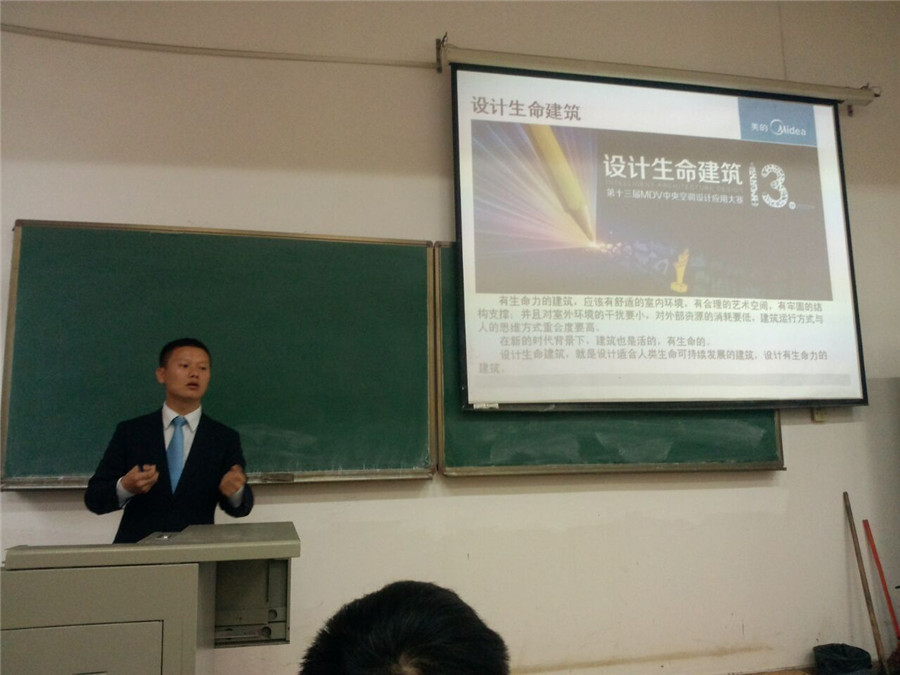 2016年4月8日,应能源与安全工程a片无码 建筑环境与能源应用工程系的邀请,美的中央空调湖南市场管理部负责人黄亚波先生来a片无码给建筑环境与能源应用工程专业毕业生作了一场有关多联机中央空调系统的专题讲座。